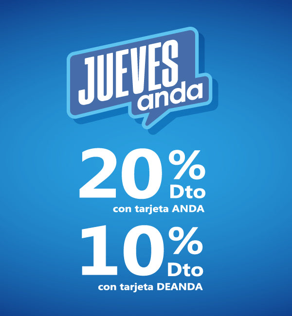 Ahora todos los JUEVES en nuestro local podrás disfrutar de un 20% de descuento con tarjeta ANDA o un 10% de descuento con tarjeta DEANDA.
